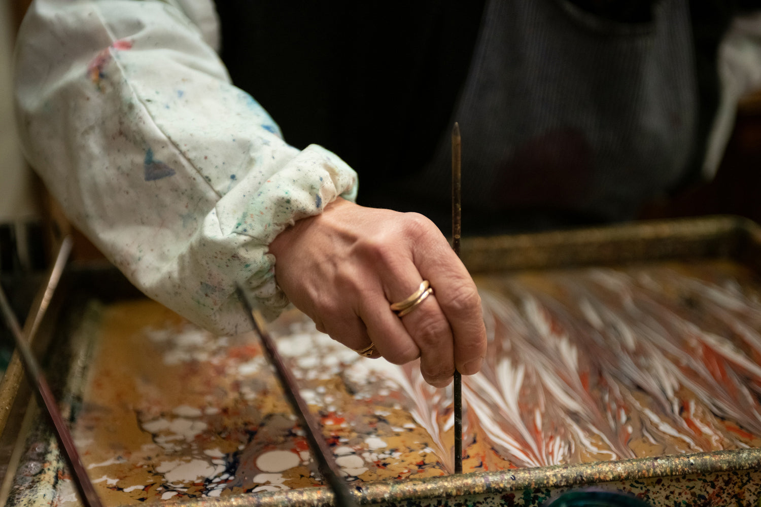 As the family legacy continues, Maria focuses on developing techniques, marbling different materials, experimenting and trying to transfer her heritage.